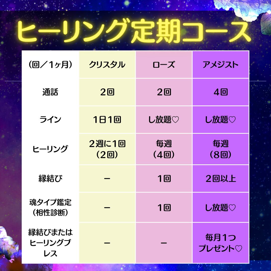 このコースは継続的に私のヒーリングを受け取っていただくことと、日々のLINEや通話を