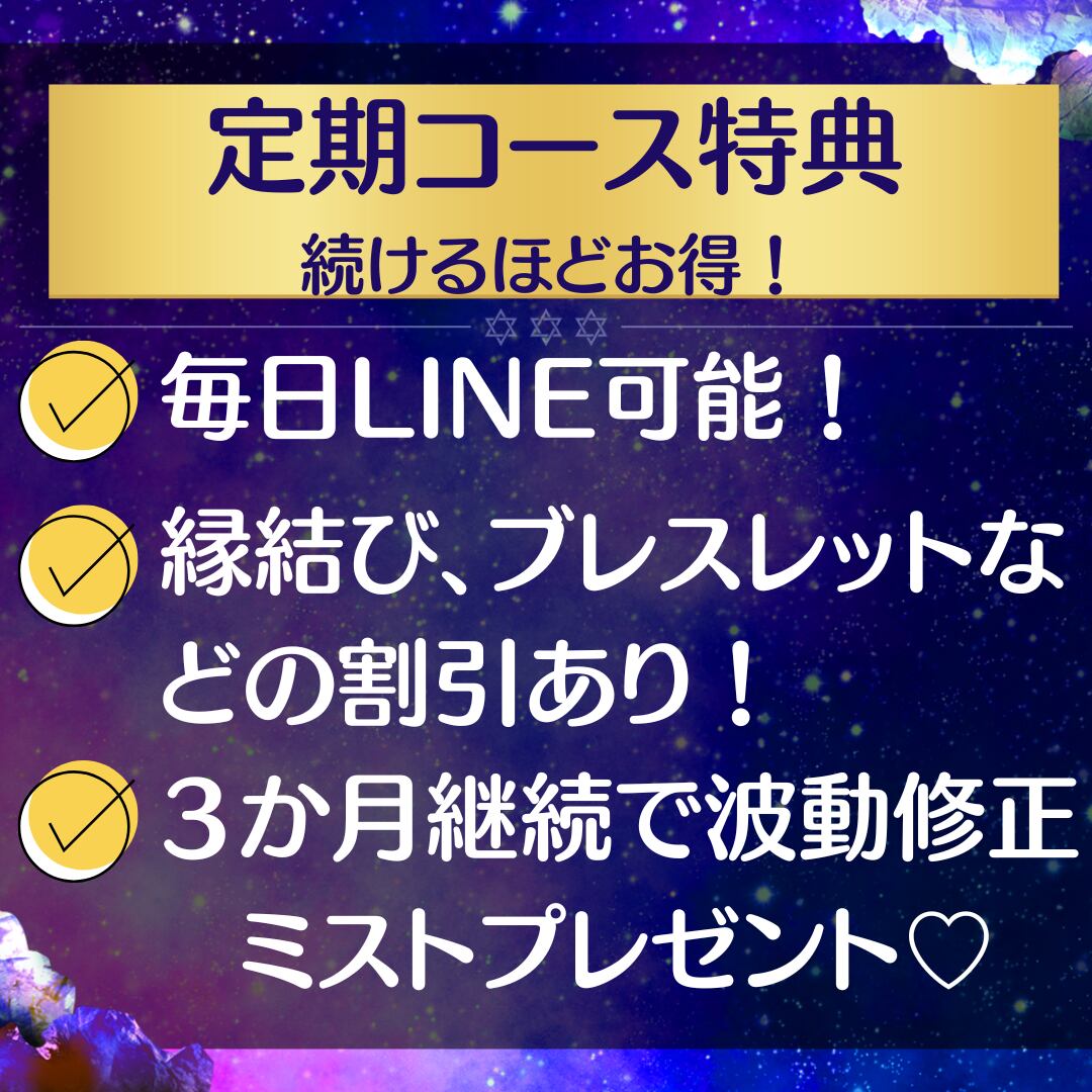 また、人生の流れを変える力もあるので、継続的に受けていただくととても効果的です♡